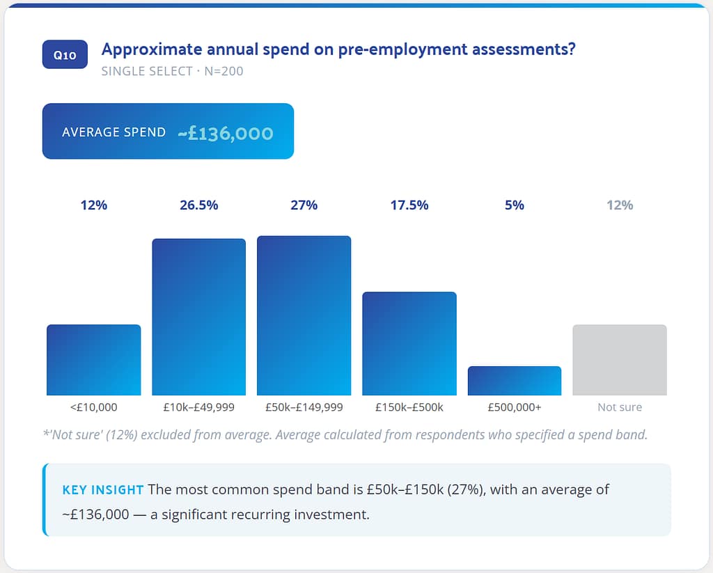 Pre-hire assessments are no longer a minor administrative expense. They are a core operational line item. According to our latest data, the average organisation spends approximately £136,000 annually on pre-employment assessments.