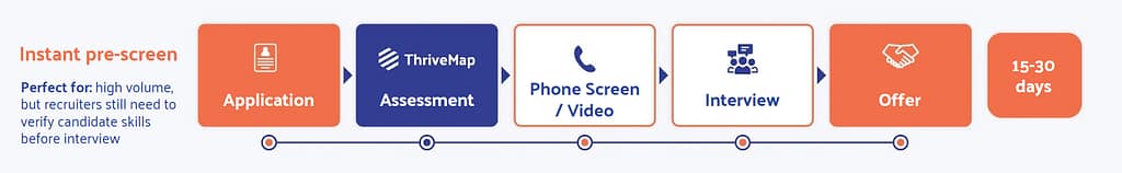With ThriveMap, candidates aren’t screened by a fixed, invisible system. They’re screened through a process you design, one that reflects the reality of the role, the volume you’re hiring at, and how much human interaction makes sense at each stage.