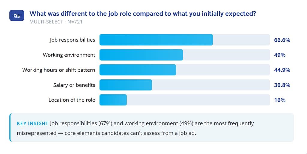 Job responsibilities (66.6%): Two-thirds of candidates found their day-to-day tasks did not match what they expected.