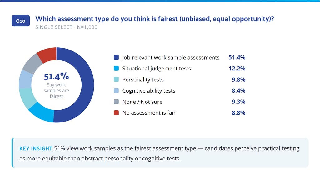 • 51.4% of candidates say work samples are the fairest assessment type