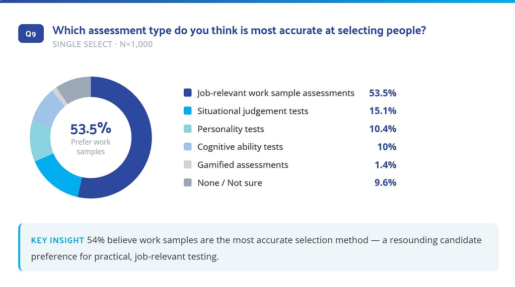 • 53.5% of candidates say work samples are the most accurate way to assess someone